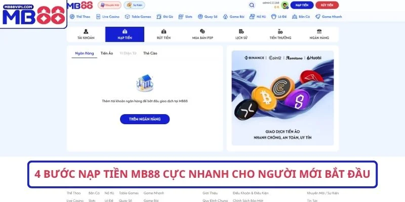 Hướng dẫn chi tiết các phương thức nạp tiền MB88 phổ biến